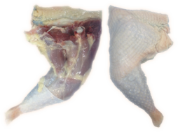 Boneless leg - vacuum packed, 2kg polybags, into carton boxes containing 6 x 2kg polybags, 12kg/carton.